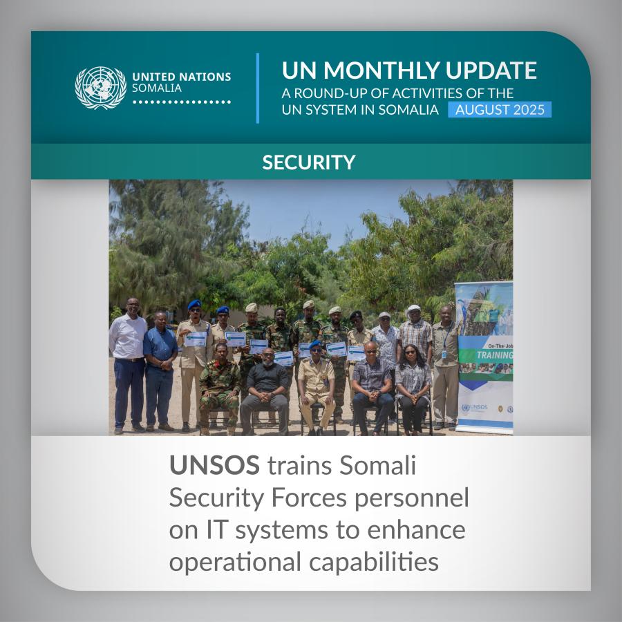 The United Nations Support Office in Somalia (UNSOS) has completed a six-week On-the-Job Training (OJT) programme for Somali Security Forces (SSF), equipping them with the skills to understand and operate emerging information technology solutions to enhance their operations.